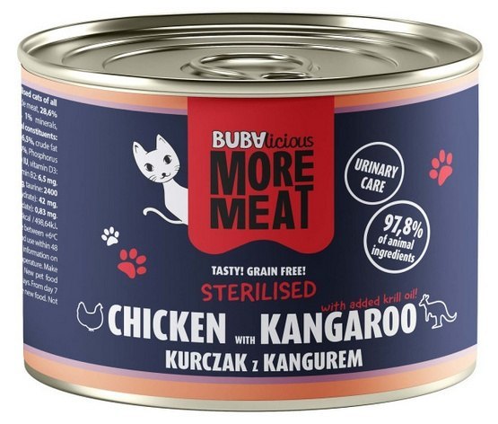 BUBAlicious Kot More Meat Sterilised kurczak i kangur puszka 185g