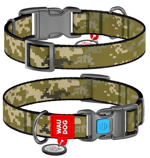 Collar WauDog Nylon Obroża nylonowa z QR-paszportem, plastikowy fastex, wzór MILITARY, S 15mm/25-35cm