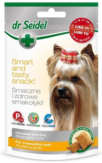 Podając psu Smakołyki dr Seidla na piękną sierść nie trzeba stosować dodatkowej suplementacji skrzypem i cynkiem.