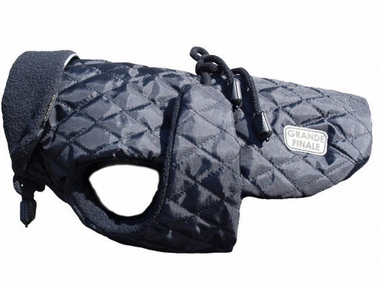 Derka czarna pikowana z kołnierzem. Derka to jedno z najwygodniejszych i najbardziej praktycznych ubrań dla psów. Jest szybka w zakładaniu, chroni i zabezpiecza najważniejsze części ciała pupila....