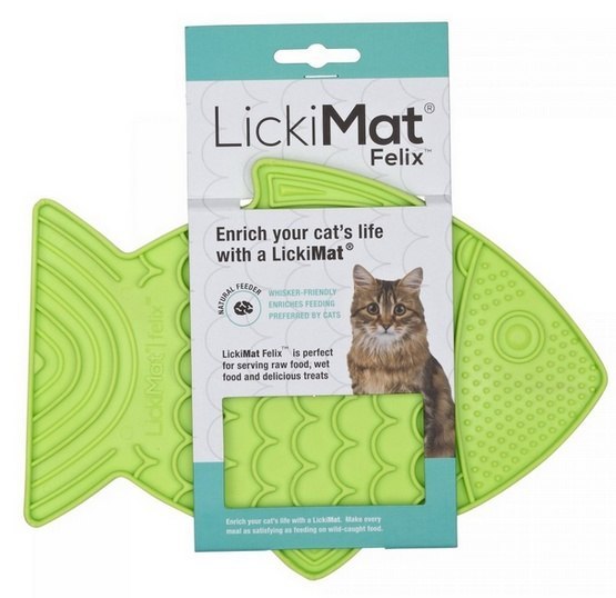 LickiMat Classic Felix to pierwsza mata dedykowana dla kotów w cudownym kształcie rybki. Jest płaska, więc nie drażni wibrysów oraz pozwala spożywać pokarm w pozycji kucającej z pełnym widokiem na otoczenie, co pomaga zmniejszyć stres i niepokój podczas jedzenia. Sprawdzi się świetnie również dla mniejszych psów!