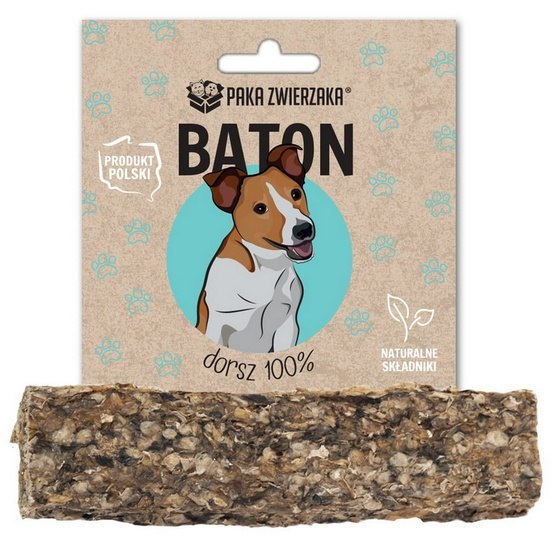 PAKA ZWIERZAKA Baton Dorsz 100% 12cm Baton wykonany ręcznie, pozbawiony klejów i barwników. Stworzony tylko z naturalnych składników najwyższej jakości. Bezpieczny dla dziąseł psa, nie zawiera...