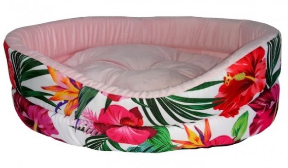 Robto Poduszka Owal EXX Przytulne legowisko dla zwierząt. Kolor : z zewnątrz kwiatowy na białym tle, wewnątrz jasnoróżowy Rozmiar : 8 Legowisko bardzo dobrej jakości: materiał trwały i łatwy do...