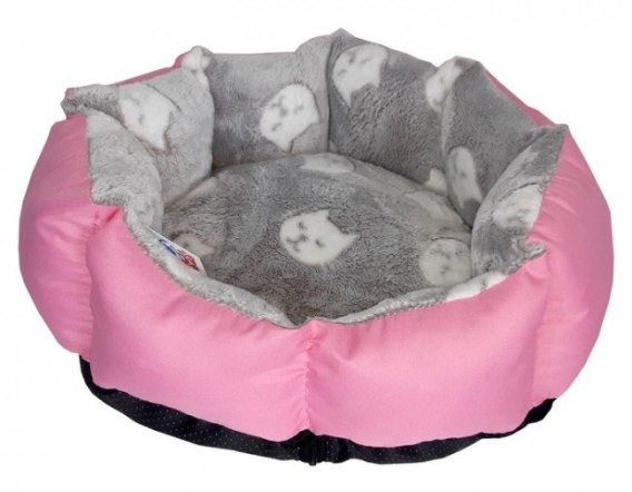 Robto Legowisko Róża EX Przytulne legowisko dla zwierząt. Kolor : z zewnątrz różowy, wewnątrz szary w białe koty Rozmiar : M Legowisko bardzo dobrej jakości: materiał przyjemny w dotyku oraz...
